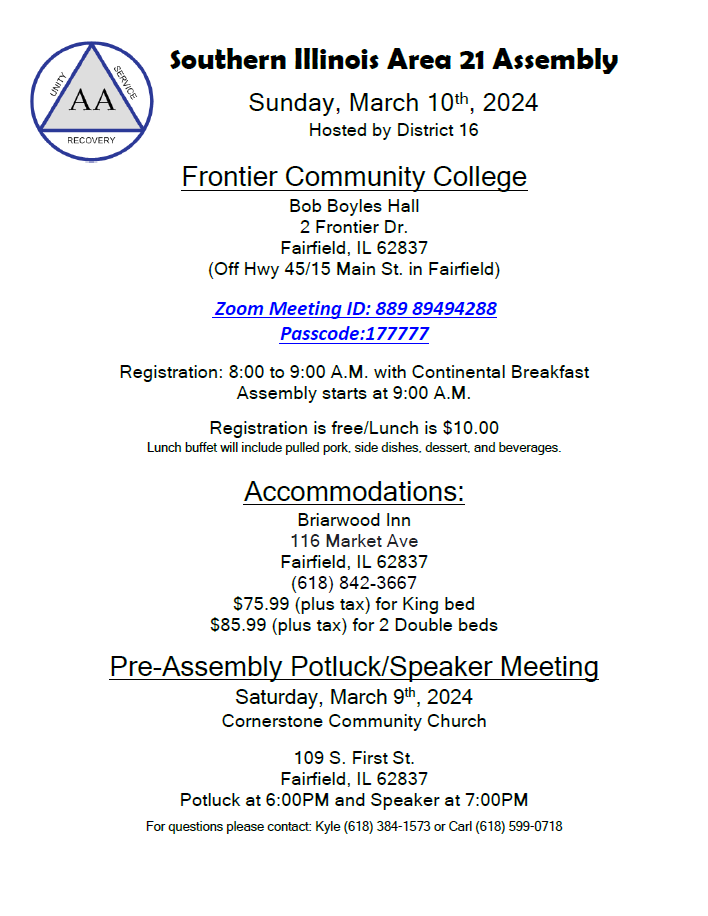 For questions please contact: Kyle (618) 384-1573 or Carl (618) 599-0718
